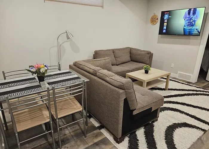 The 1-room 2-Bedroom Private Entrance Suite With Full Kitchen Calgary is located 3.7 km from Holy Trinity Church and around a 10-minute drive from Wccac. At the spacious 74 m^2 apartment, Wi-Fi and a car park are also provided.